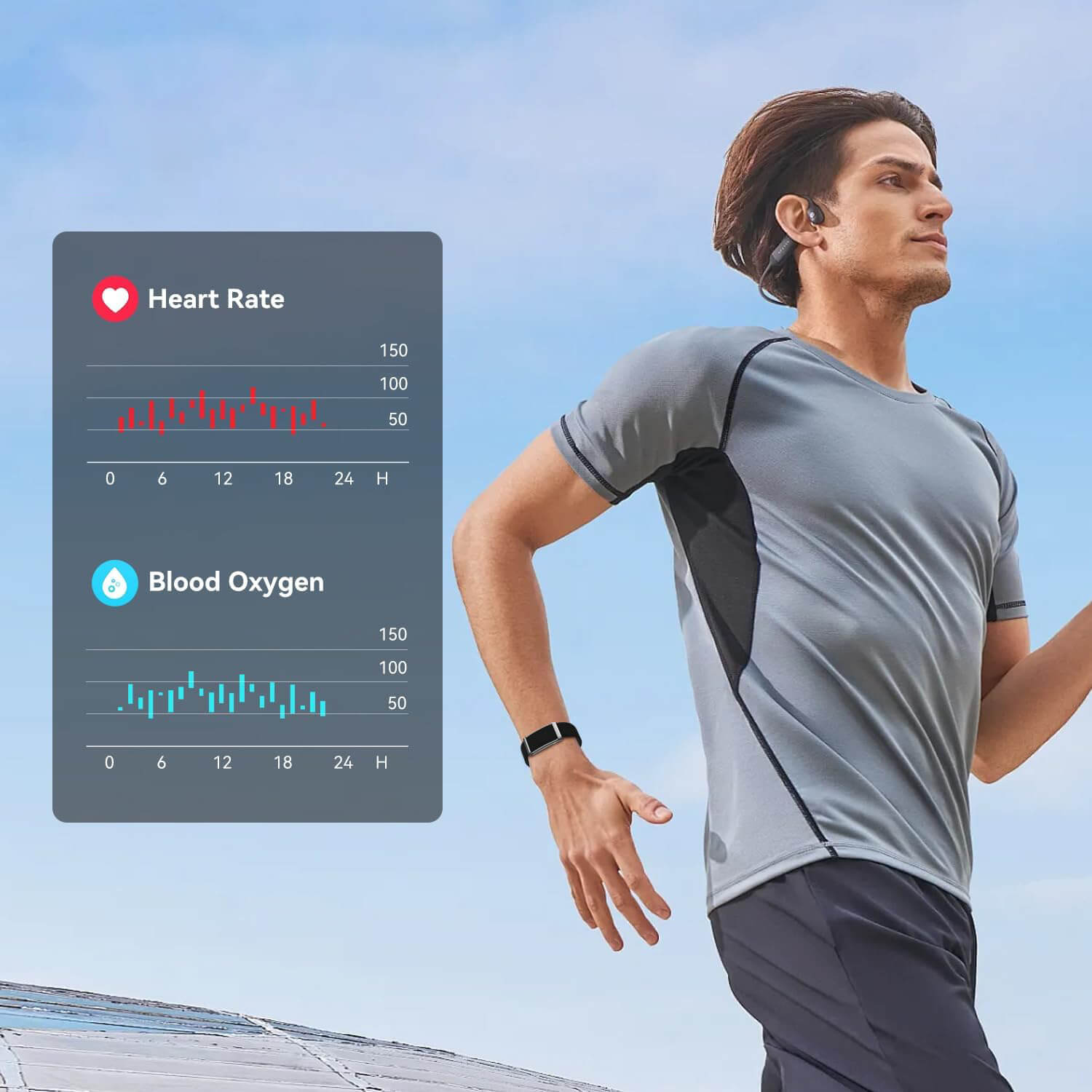 (1) Für Schrittzähler, Schlafüberwachung und Weckalarme muss Bluetooth nicht ständig aktiviert sein. Sie können das Armband beim Sport tragen und die Daten später synchronisieren.